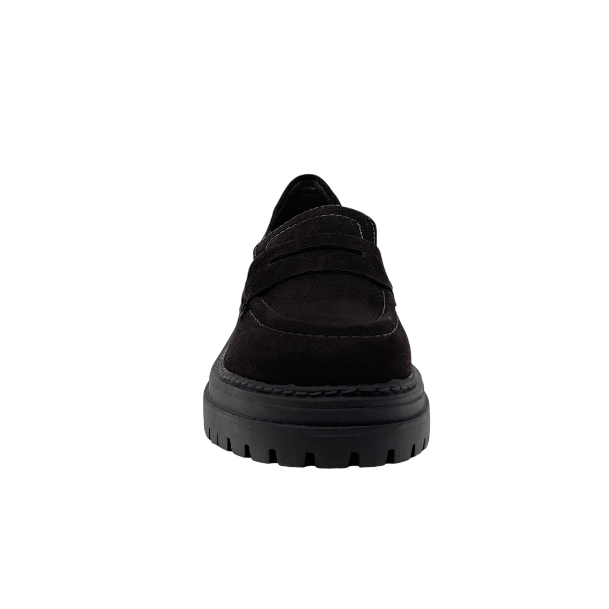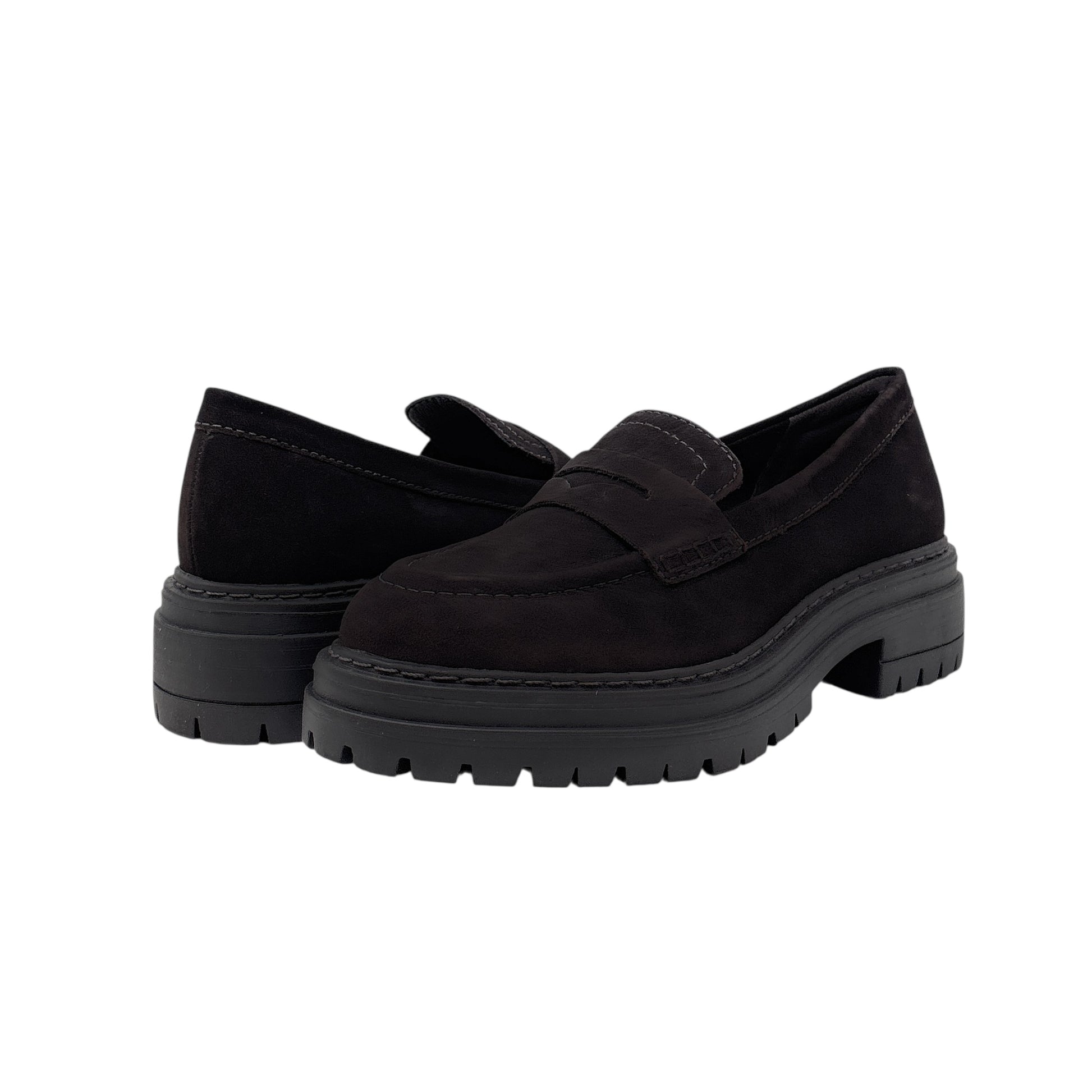 A chunky sole boosts this classic penny loafer detailed with moc-toe stitching.