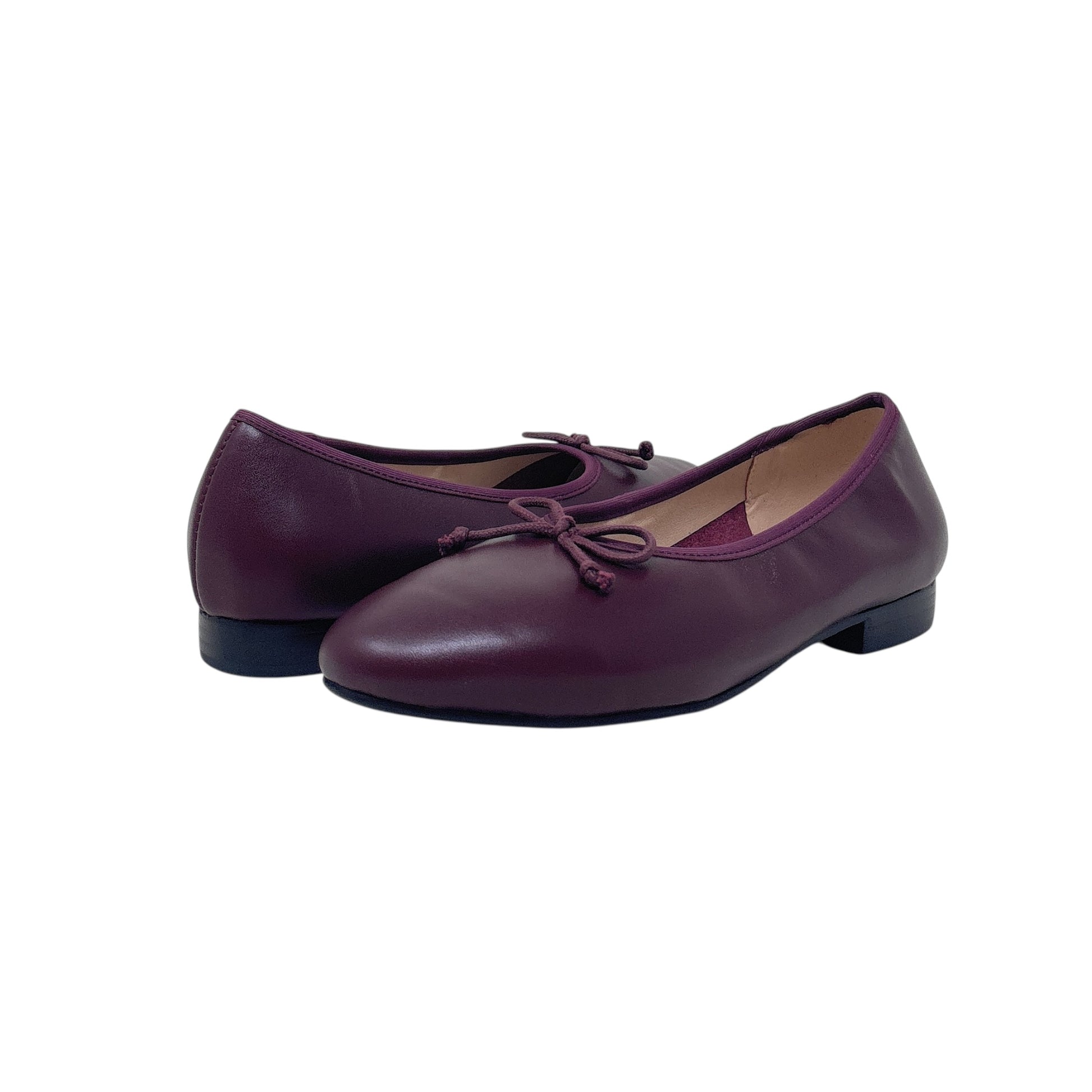 A rounded toe adds subtle charm to this minimalist leather ballet flat decorated with a dainty bow.