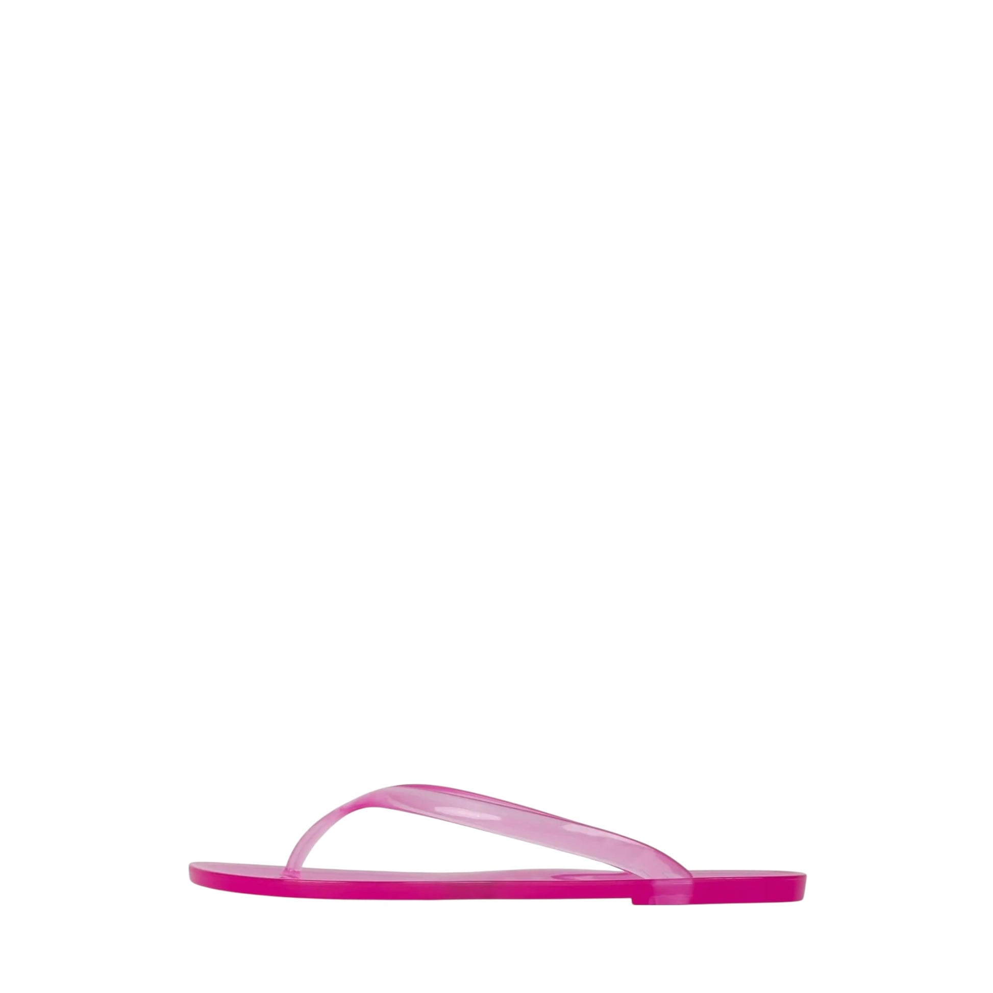 A translucent design amplifies the contemporary flair of a flexible jelly flip-flop secured with a center toe post and ready for your warm-weather adventures.