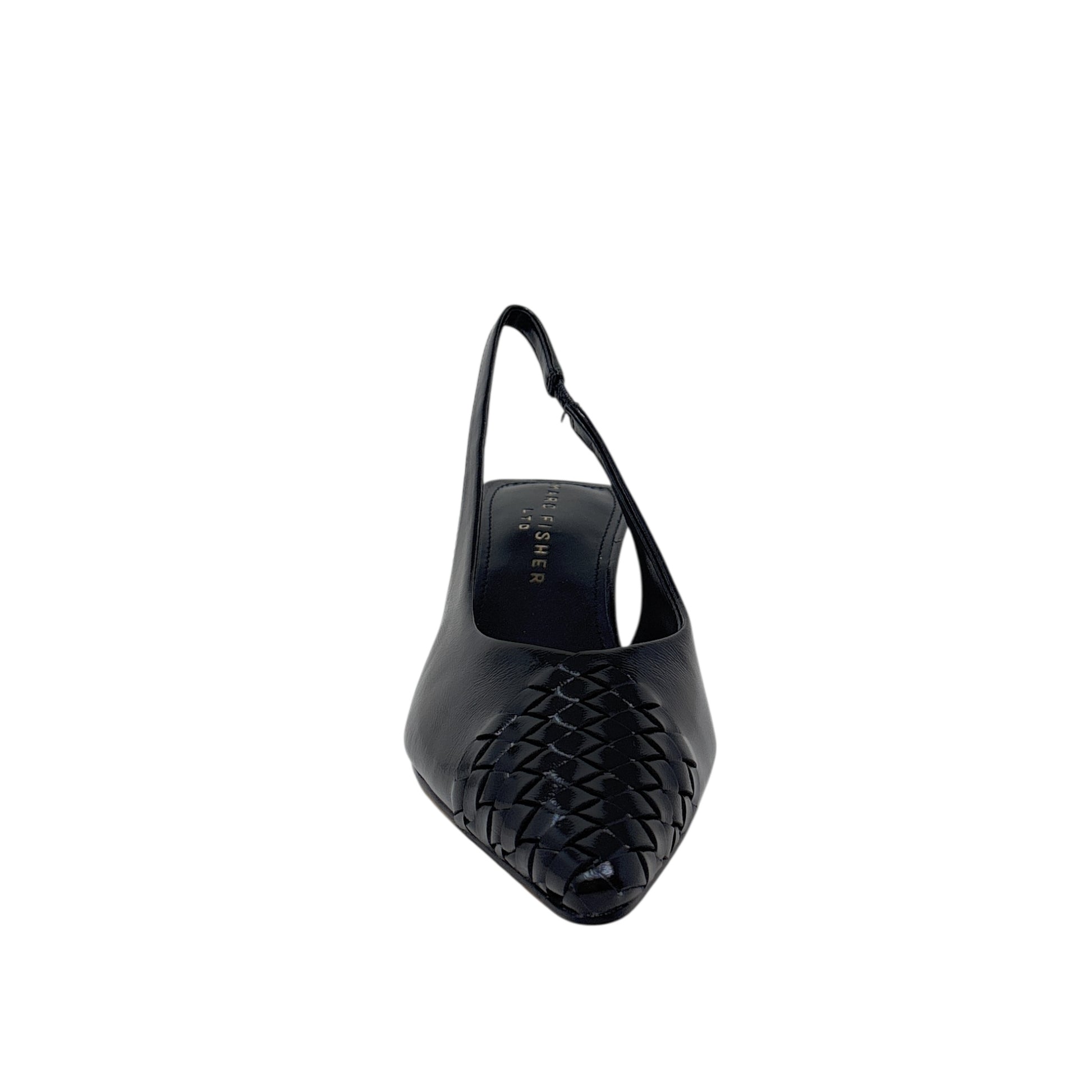 Upgrade your shoe closet with this leather slingback pump refined with a woven pointy toe for sleek sophistication.