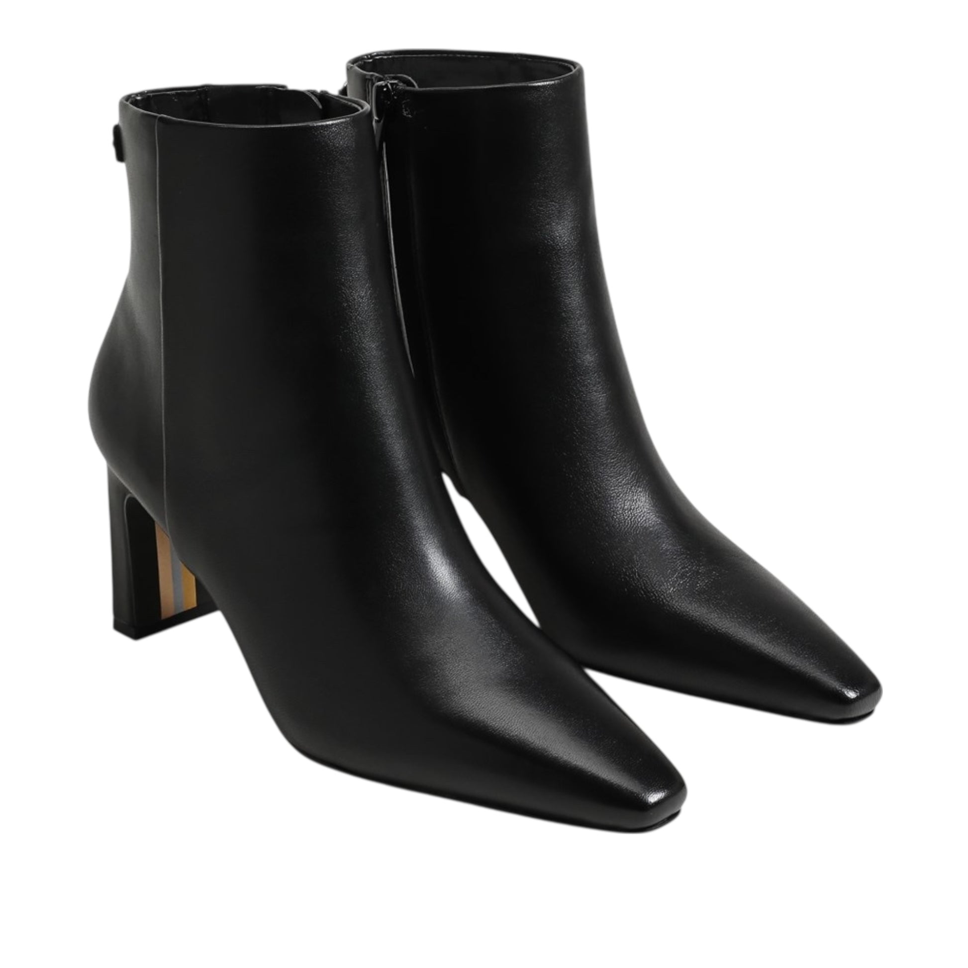 A slender square toe and demi block heel balance a versatile bootie fashioned with a side zipper for easy entry.